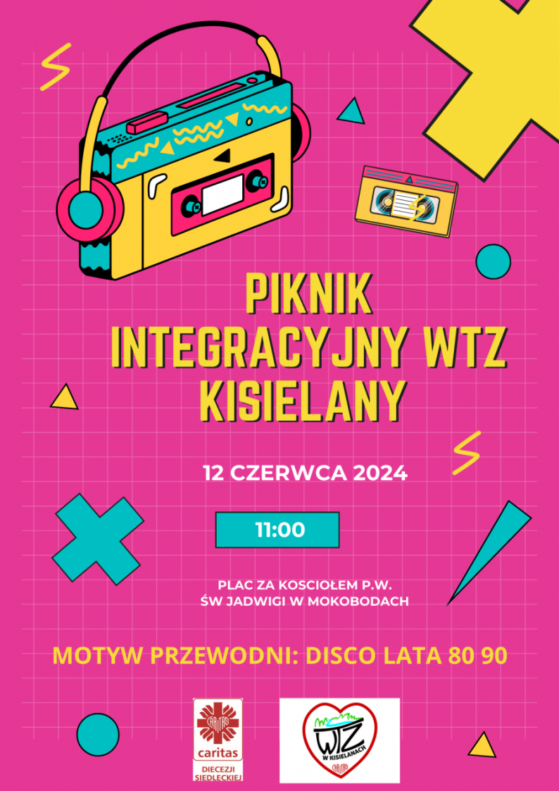 Warsztat Terapii Zajęciowej w Kisielanach – placówka Caritas Diecezji Siedleckiej organizuje 12 czerwca 2024 r. o godz. 11:00 piknik integracyjny, skierowany do osób z niepełnosprawnościami. Wydarzenie odbędzie się na placu za kościołem pw. św. Jadwigi przy ul. Plac Chreptowicza 6 w Mokobodach. Temat przewodni pikniku: „Disco Lata 80 90”.