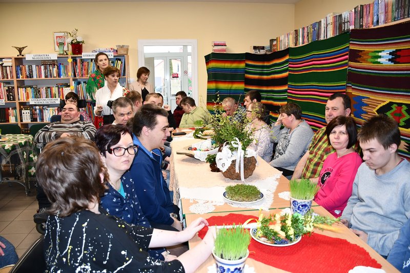 Uczestnicy parczewskiego Warsztatu Terapii Zajęciowej, placówki prowadzonej przez Caritas Diecezji Siedleckiej, wzięli udział 6 kwietnia 2022 r. w warsztatach etnograficznych dotyczących Wielkanocy w Powiatowej Bibliotece Publicznej – Centrum Kultury w Parczewie.