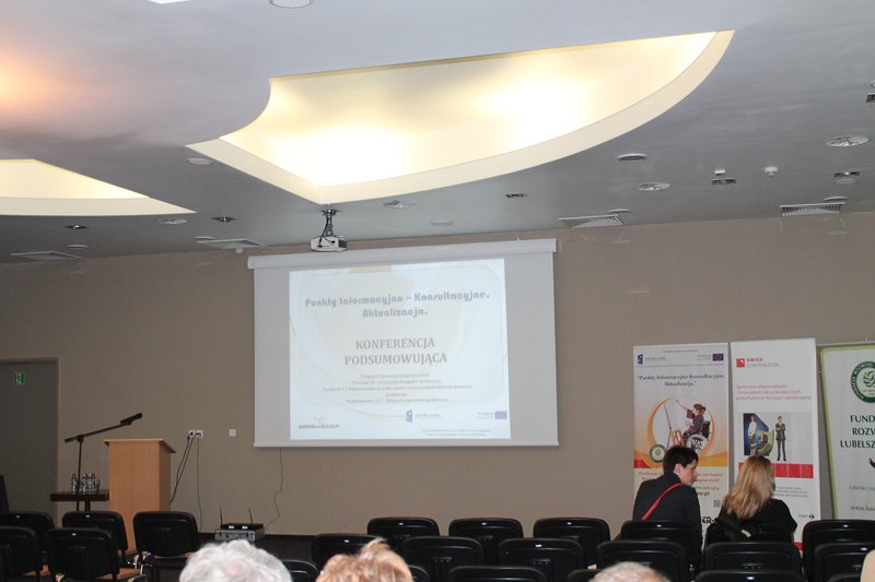 12 września 2014r. w Hotelu Victoria w Lublinie odbyła się konferencja podsumowująca projekt pt.:”Punkty Informacyjno – Konsultacyjne. Aktualizacja”. Zaprezentowano na niej firmę Grone-Netzwerk Berlin zatrudniającą osoby niepełnosprawne. Pokazano raport dotyczący polskiego i niemieckiego modelu ekonomii społecznej w zatrudnieniu osób z niepełnosprawnością. Jako dobrą praktykę zaprezentowano spółdzielnię socjalną „Kreatywni” z Bydgoszczy. Uczestnicy wzięli udział w panelu dyskusyjnym z udziałem m. in. Pani Małgorzaty Mądry – Zastępcy Dyrektora Regionalnego Ośrodka Polityki Społecznej w Lublinie oraz Pani Alicji Jankiewicz – Prezesa Zarządu Lubelskiego Forum Organizacji Osób Niepełnosprawnych – Sejmik Wojewódzki w Lublinie.