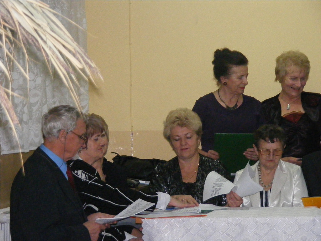 Grupa którą utworzyliśmy realizując zadanie przygotowała spotkanie podsumowujące realizacje projektu w formie biesiady, które odbyło się 29.11.2012r. W spotkaniu wzięli udział Ksiądz Prałat Tadeusz Lewczuk, Ks. Marek Bieńkowski Dyrektor Caritas Diecezji Siedleckiej, Waldemar Wezgraj Starosta Powiatu Parczewskiego, Paweł Kędracki Burmistrz Miasta Parczewa, przedstawiciele rady powiatu i rady miasta oraz przedstawicie organizacji działających na terenie naszego powiatu i miasta. Spotkanie rozpoczęło się przywitaniem przybyłych gości. Następnie Koordynator zadania Anna Walczyna zaprezentowała pokaz mający na celu przedstawienie celów realizowanych przez grupę wsparcia „Aktywnym seniorem być”. Po takim wstępnie zaproszono wszystkich gości do wysłuchania i wzięcia czynnego udział we wspólnym biesiadowaniu przy słowach znanych przyśpiewek biesiadnych. Spotkanie upłynęło bardzo miło można rzec śpiewająco po występie uczestników zaproszono gości do konsumowania przepysznych wiejskich smakołyków.