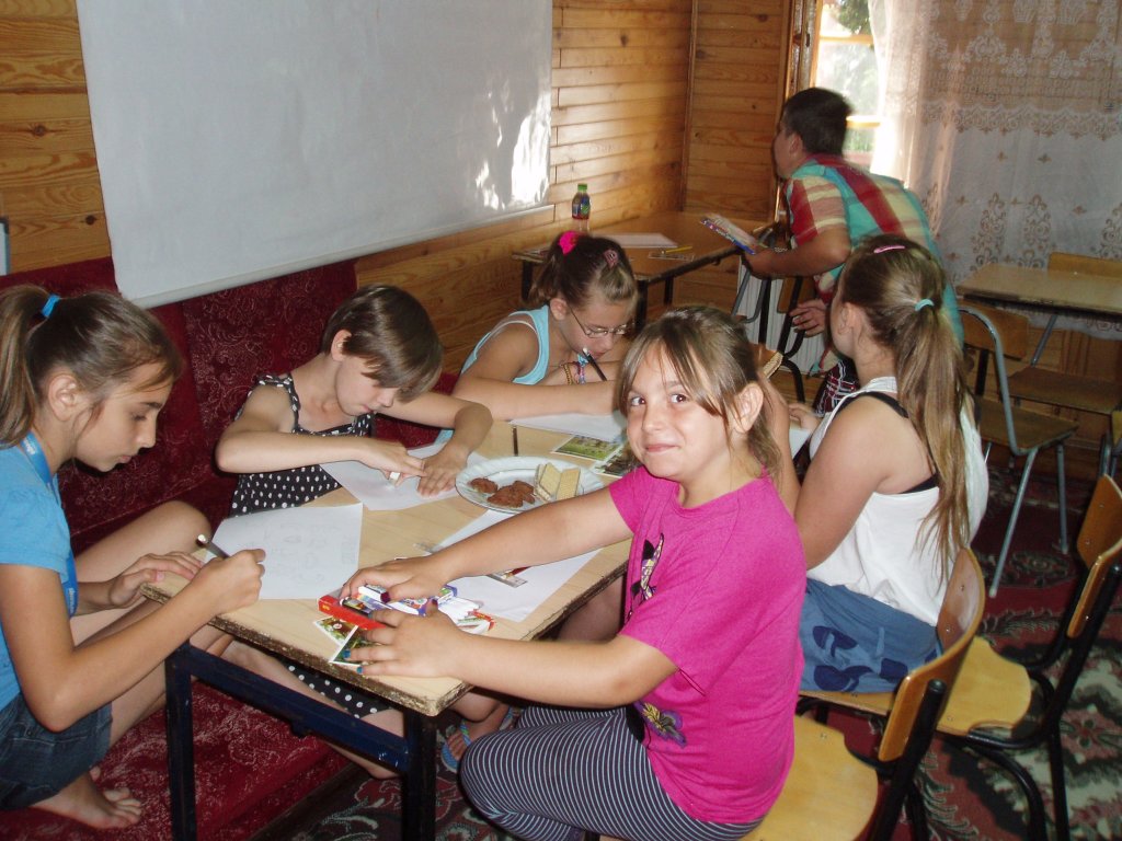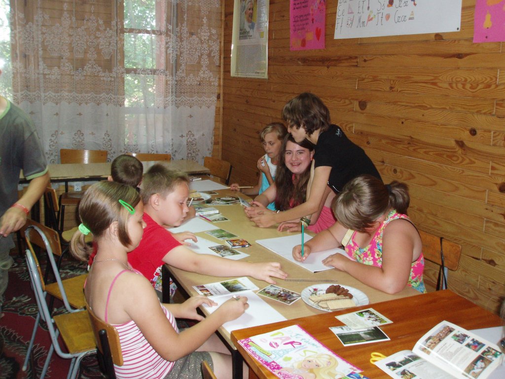 W ruch poszły kartony, ołówki, kredki, flamastry, farby… Każdy z nas przypominał sobie ciekawe chwile spędzone w Hołownie, a następnie starał się uwiecznić je na papierze. W ten sposób powstały kolorowe obrazki przedstawiające: stare chaty chłopskie, stodoły, pola, łąki usiane rumiankami, przedstawiające dawne czynności rolnicze oraz zajęcia domowe.