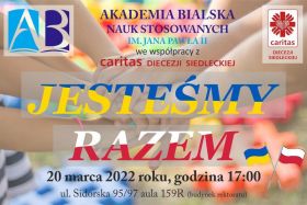 Wzajemne poznanie i nawiązanie pozytywnych relacji – to cel spotkania skierowanego do dzieci i młodzieży z Polski i Ukrainy, które odbędzie się 20 marca (niedziela) 2022 r. o godz. 17:00 w Akademii Bialskiej Nauk Stosowanych im. Jana Pawła II przy ul. Sidorskiej 95/97 w auli 159R (budynek rektoratu) w Białej Podlaskiej. Wstęp wolny!